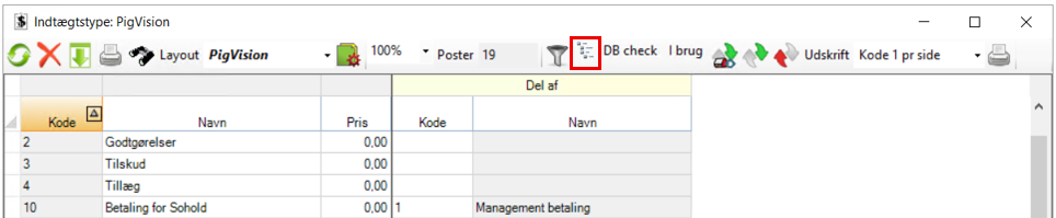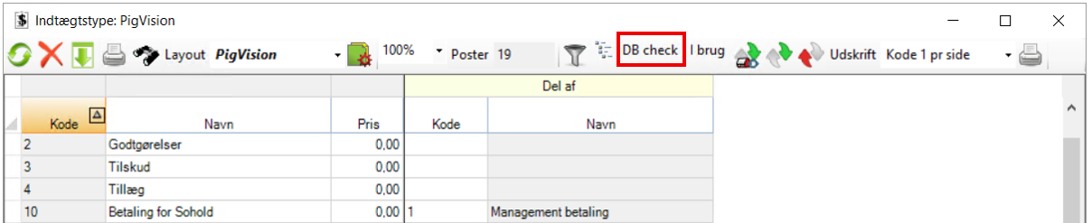 - DB Check: Tryk på dette ikon, hvis du ønsker at benytte indtægtstyperne til DB check.