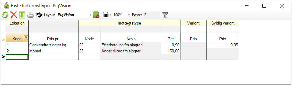 Opret dine faste daglige, månedlige eller årlige indtægtstyper på bestemte lokationer, så du allerede har dem oprettet i PigVision og ikke skal registrere dem, når de dukker op.