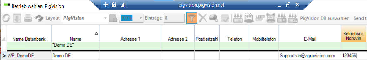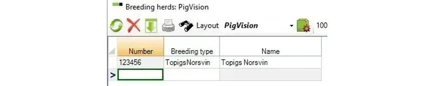 Geben Sie Ihre Topigs Norsvin Betriebsnummer, die Sie von Topigs Norsvin erhalten haben, in die Spalte „Betriebsnummer Norsvin” ein und schließen Sie das Fenster.