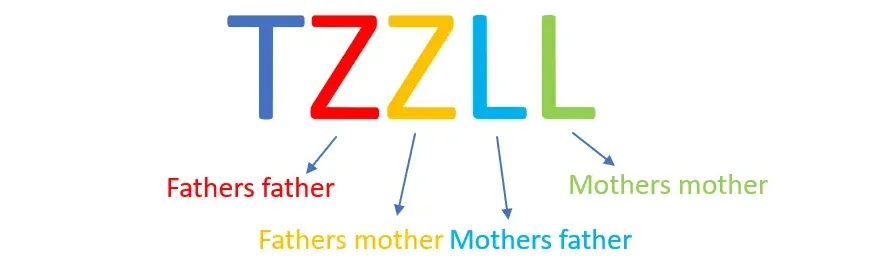 Der dritte Buchstabe bezieht sich auf die Mutter des Vaters