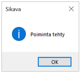 Lopuksi ohjelma ilmoittaa poiminnan olevan valmis: