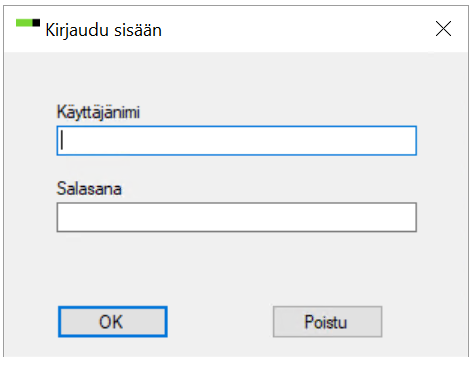 Klikattaessa logoa ohjelma kysyy Sikavan käyttäjänimeä sekä salasanaa: