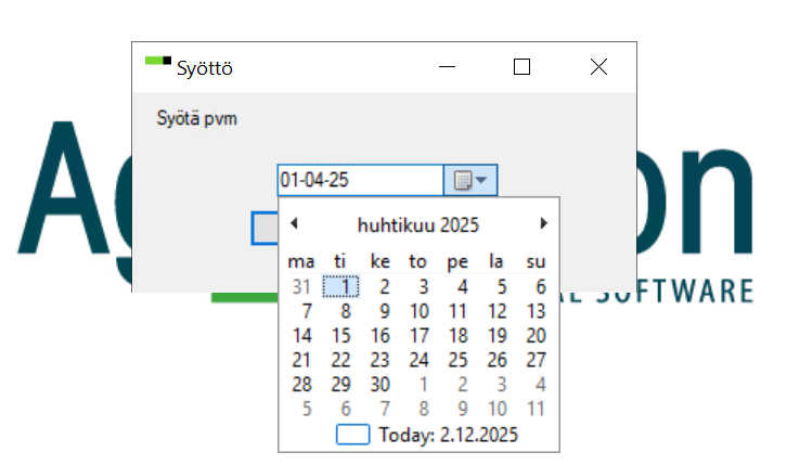 Huomio: Jos syötät tietoja taaksepäin, sinun on muutettava ohjelman validointeja. Normaalisti ei ole mahdollista syöttää tietoja yli 220 päivää taaksepäin.