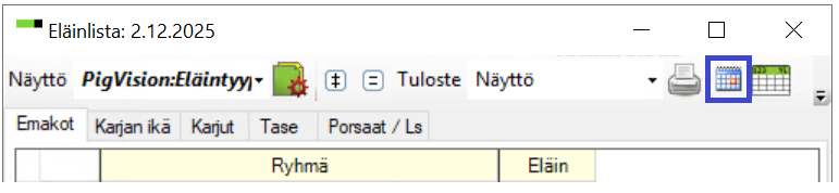 Valitse välilehti ”Tuotannon hallinta” ja valitse ”Eläinlista”. Tämän päivän päivämäärä näkyy, mutta voit napsauttaa kalenteria ja valita haluamasi päivämäärän.