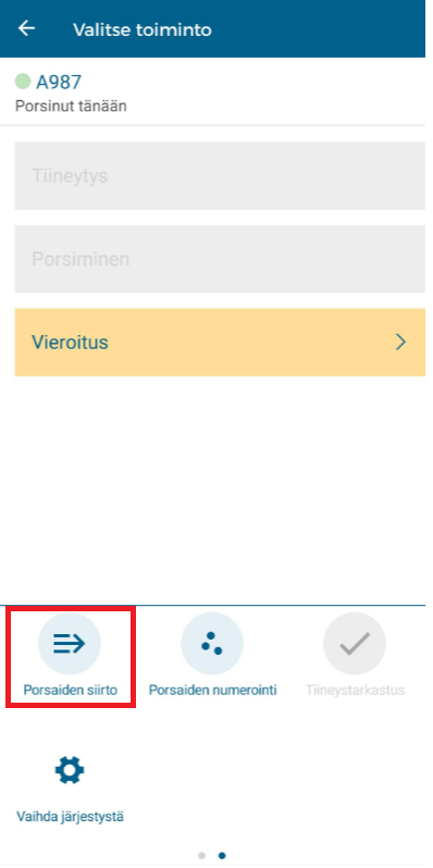 Tallenna pahnueen sijoitus tai siirto napsauttamalla "Porsaiden siirto".