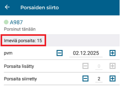 PigVision Mobile Sows (Emakot) -sovelluksessa voit kirjata porsaiden siirrot emakolta toiselle varmistaaksesi imevien porsaiden määrän tasaisen jakautumisen.