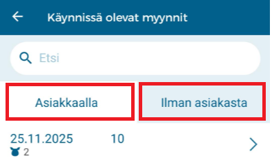 Asiakasluettelossa näkyvät myös avoimet myynnit, joita ei ole vielä hyväksytty.