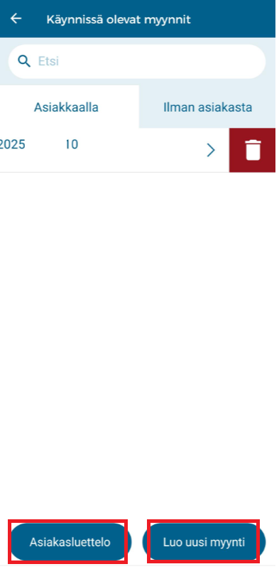 Alla voit siirtyä asiakasluetteloon tai luoda uuden myynnin: