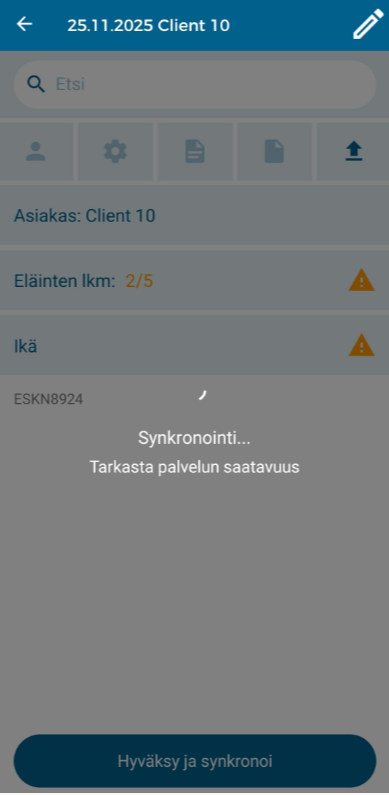 Voit painaa "Hyväksy ja synkronoi" hyväksyäksesi myynnin. Tämän jälkeen myynti sovelluksessa hyväksytään ja se synkronoidaan PigVisioniin.