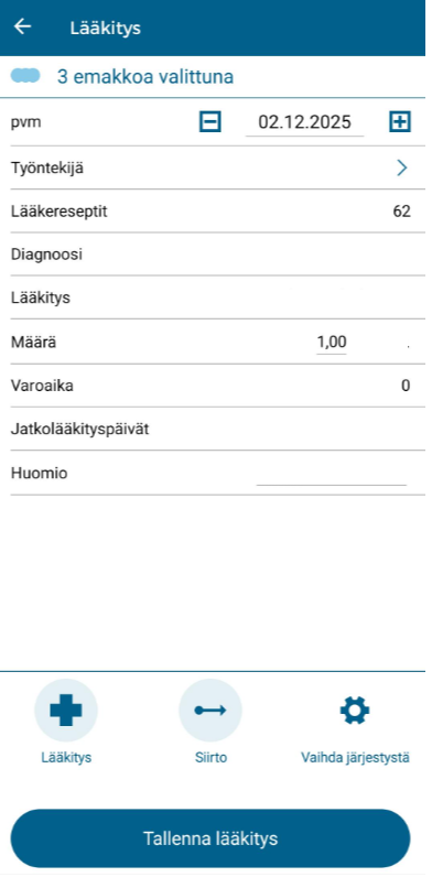 Napsauta kohdassa "Valitse toiminto" kohtaa "Lääkitys".
