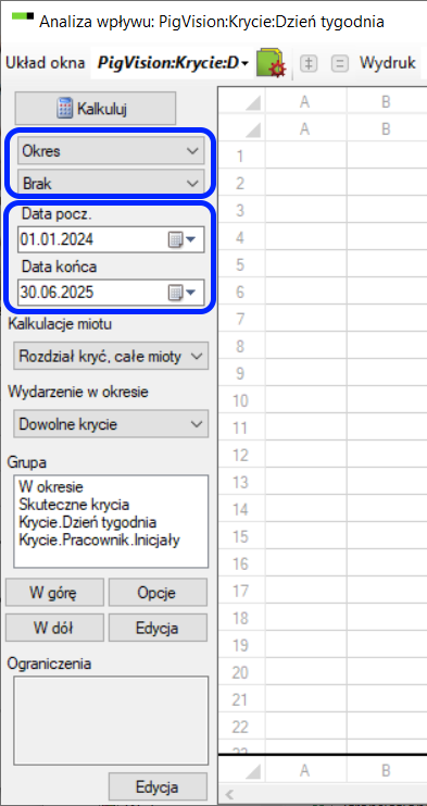 W pierwszym polu wybieramy Okres, w drugim Brak jak zaznaczono na ilustracji poniżej.