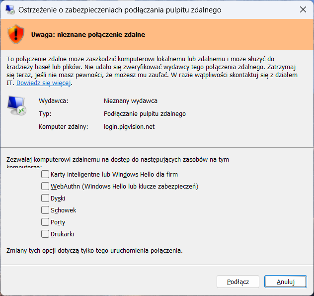 - Pobieramy plik PigVision Online.RDP z linku na dole artykułu.
