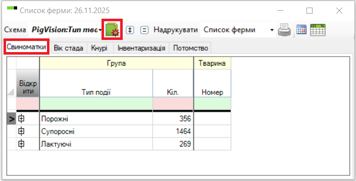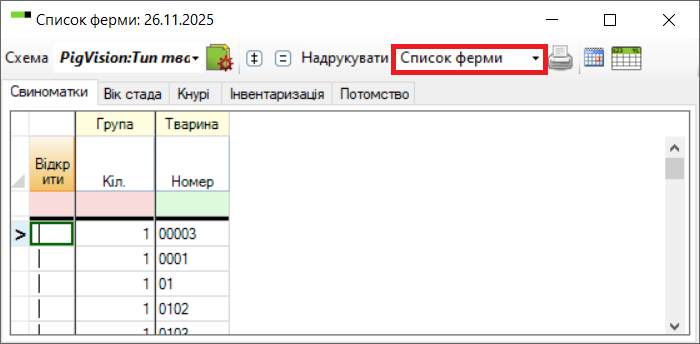Перейдіть до розділу «Управління» – «Список ферми» та виберіть вкладку «Свиноматки».