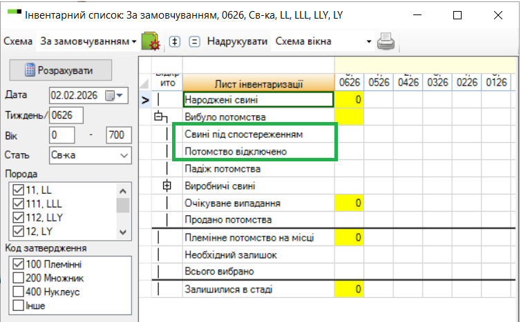 «Плем. стадо» – «Стан породи потомства»