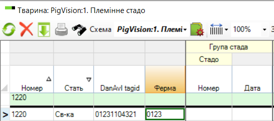 Якщо у вас багато тварин, які не пов'язані з номером вашого стада, це можна зробити досить легко. Додавання номера стада можна здійснити двома способами, залежно від того, чи відрізняється дата введення до стада від дати, коли тварина стає свиноматкою. У наведеному нижче прикладі ми використовуємо свиноматку 1220, яка в цьому випадку має DanAvl tagid. Але процедура однакова незалежно від того, яку генетичну компанію ви використовуєте.