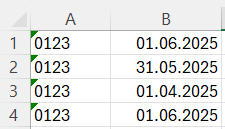Поверніться до PigVision та скопіюйте (Ctrl + C) дату введення для всіх тварин. Перейдіть до Excel та вставте (Ctrl + V) скопійовані дані у стовпець B. Переконайтеся, що кількість рядків з номером стада та датою введення однакова.
