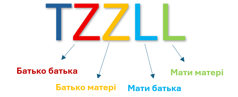 - TZZLX - свиноматка зигзагоподібної породи, запліднена батьком-лінією Z, батьком матері Ландрасом та гібридом матері матері.