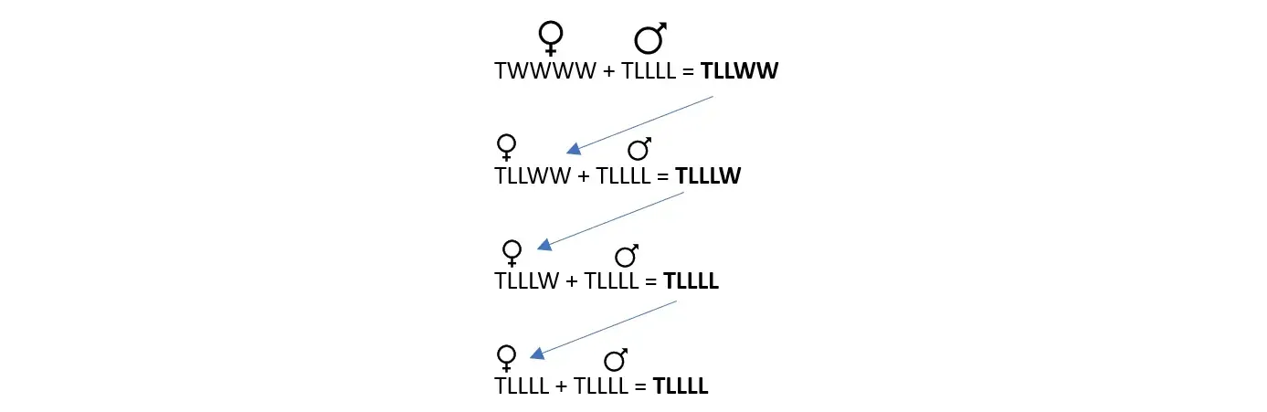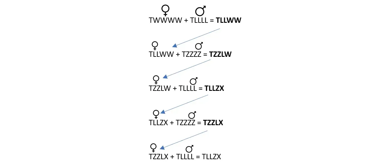 Через деякий час стадо InGene матиме лише тварин TZZLX та TLLZX.