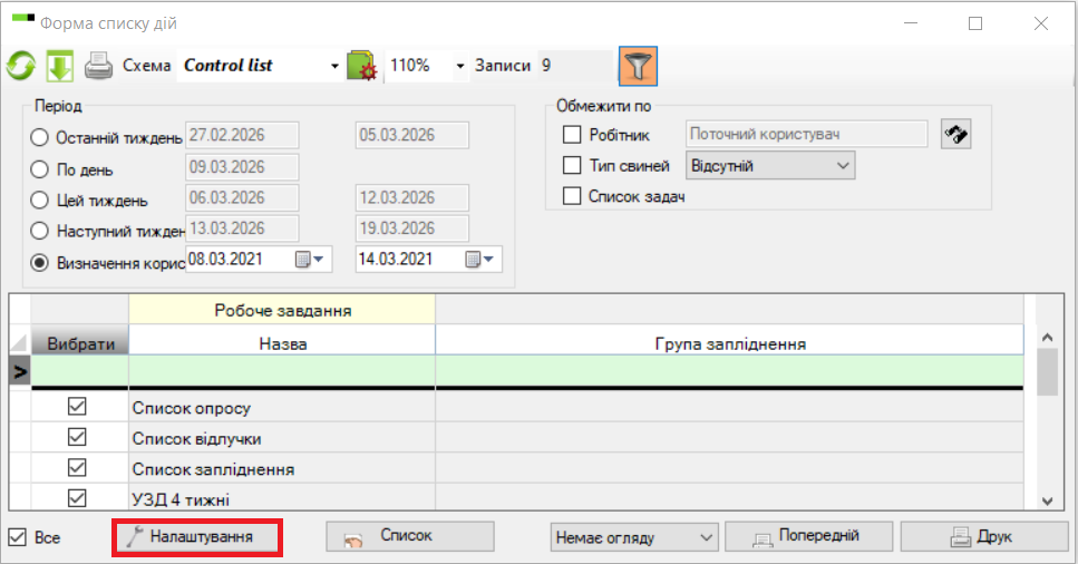 Перейдіть до розділу «Управління» – «Список задач» та натисніть «Налаштування»: