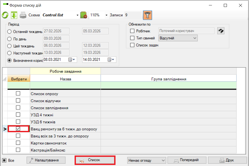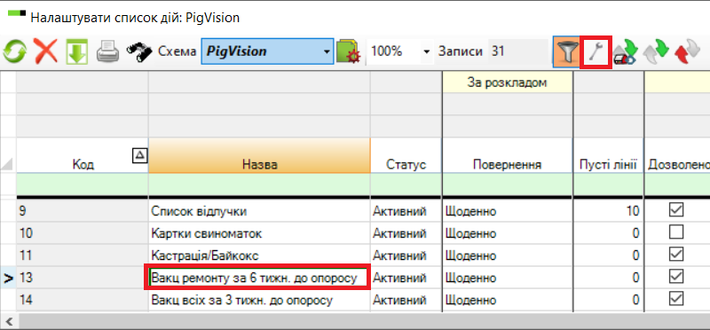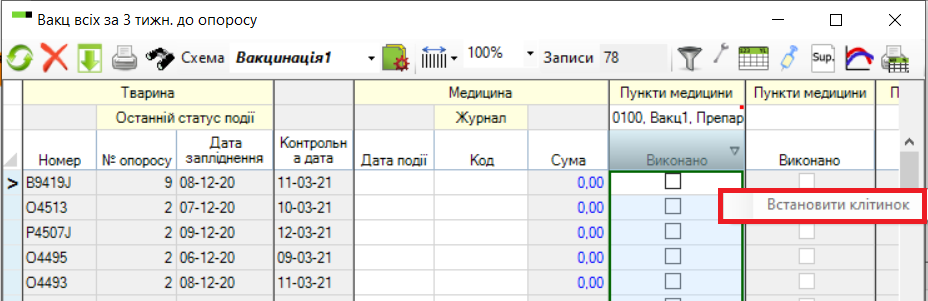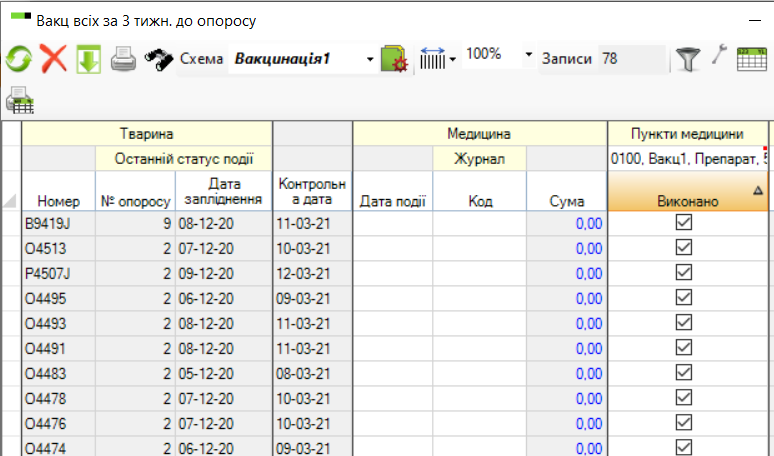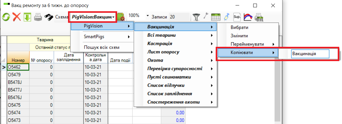 Вакцинацію вже налаштовано як один зі стандартних робочих списків PigVision. Існує 3 різні списки: