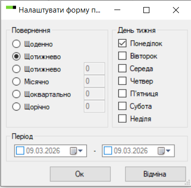 Виберіть повторення для списку дій і натисніть кнопку «ОК».