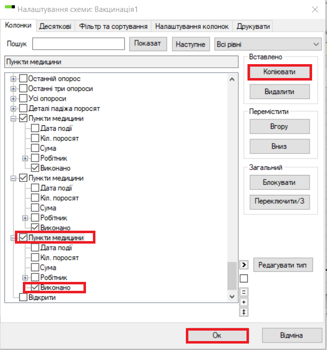 Додайте «Пункти медицини» та «Виконано», встановивши позначки у відповідних клітинках. Коли ви натискаєте на Пункт медицини, ви можете додати більше процедур до того ж списку задач, натиснувши «Копіювати». Ви можете зробити скільки завгодно копій.
