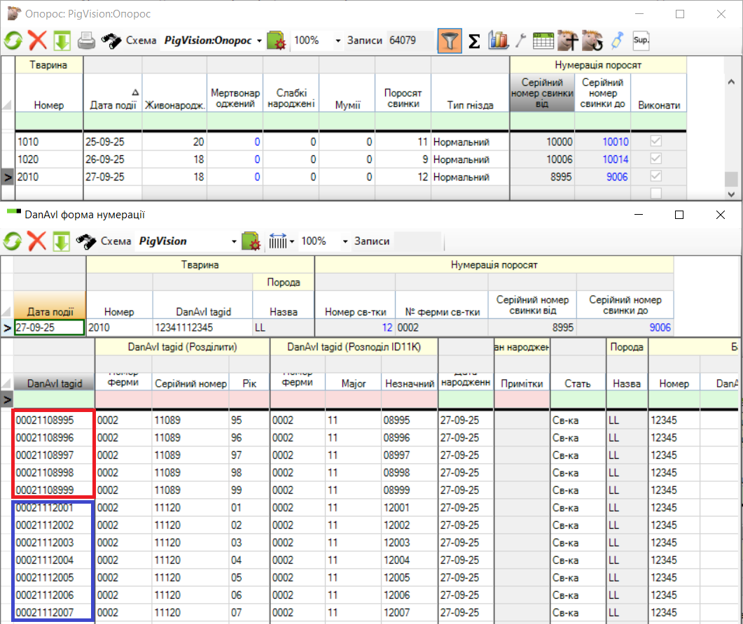 Коли ви повернетеся на вікно опоросу, ви зможете продовжити нумерацію наступних поросят.