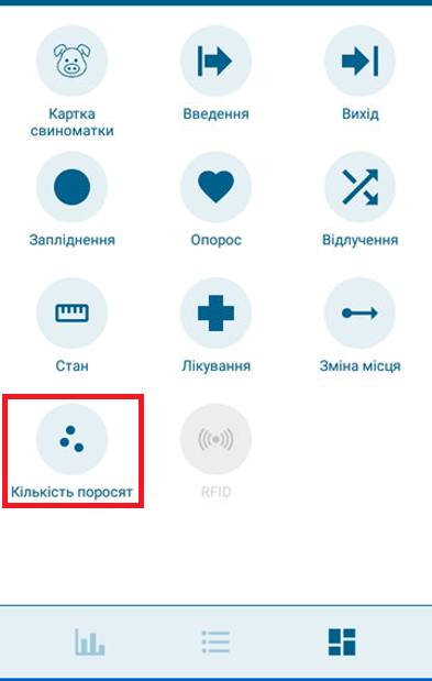 На головному екрані виберіть «Кількість поросят»