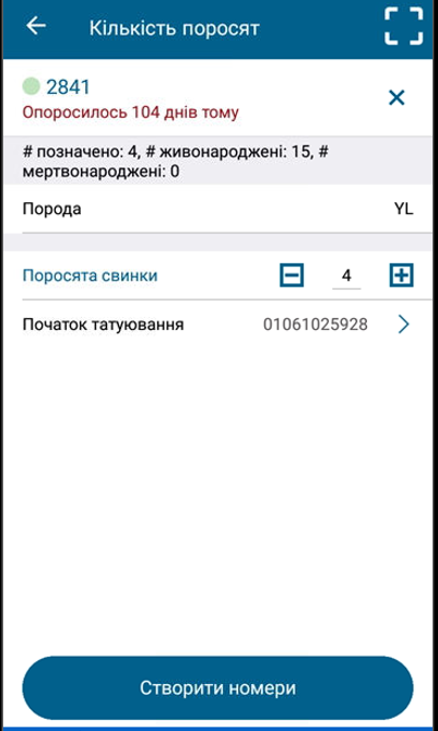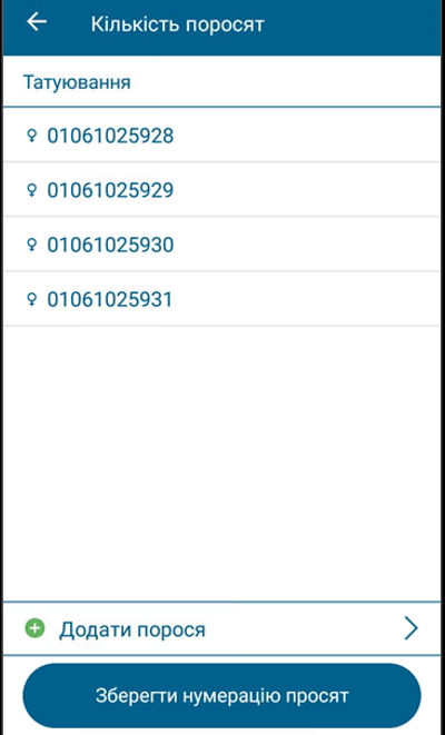У додатку відобразяться пронумеровані поросята. Натисніть «Зберегти нумерацію поросят».