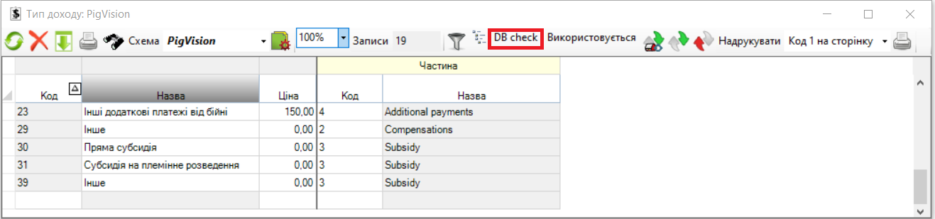 2. DB check: Натисніть на цю піктограму, якщо ви хочете використовувати типи доходів для перевірки DB.